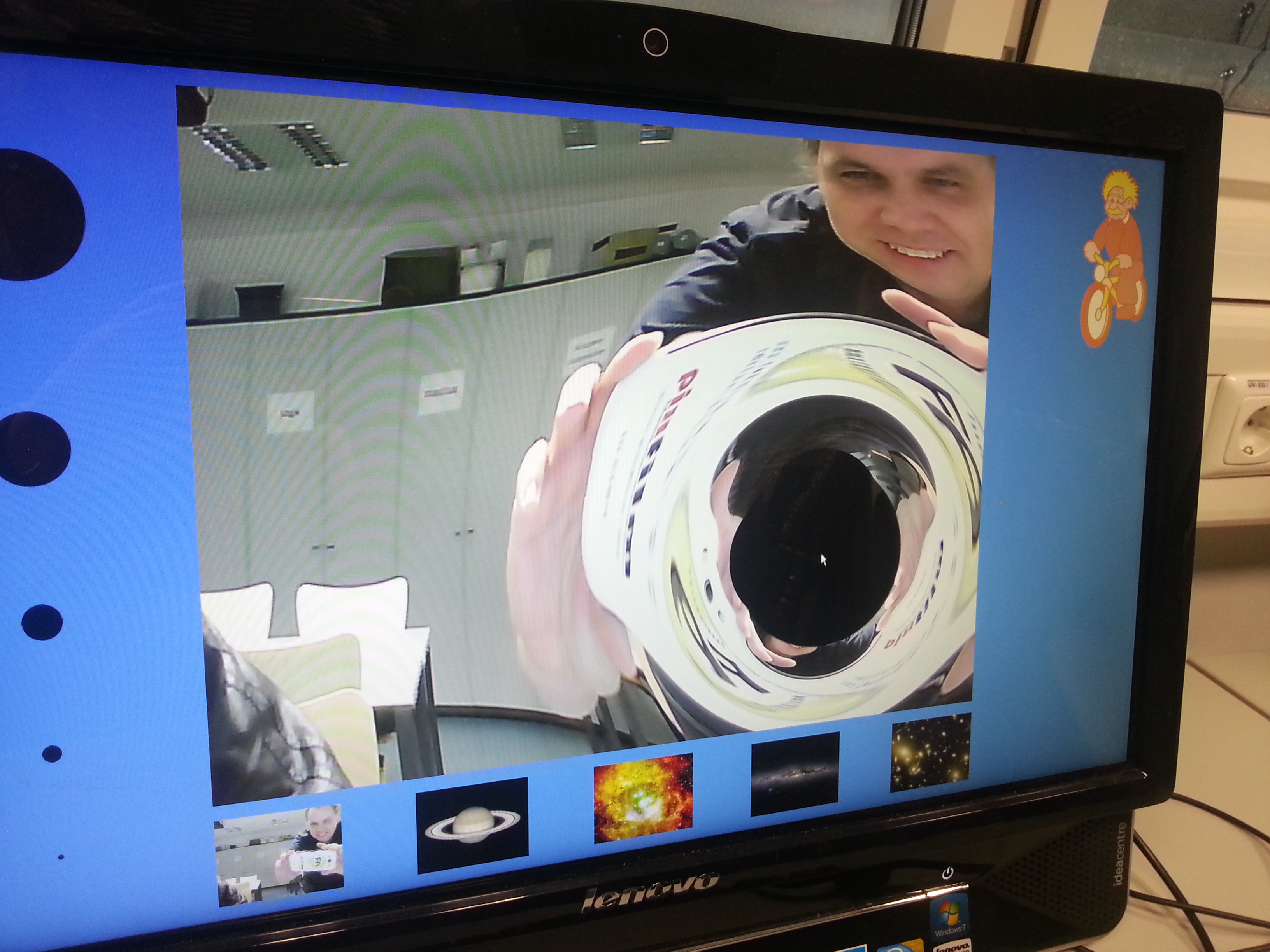 Fahrradsimulator. Hier wird der Lichttunneleffekt bei fast Lichtgeschwindigkeit mittels einer Fahrradtour durch Tübbingen gezeigt. |