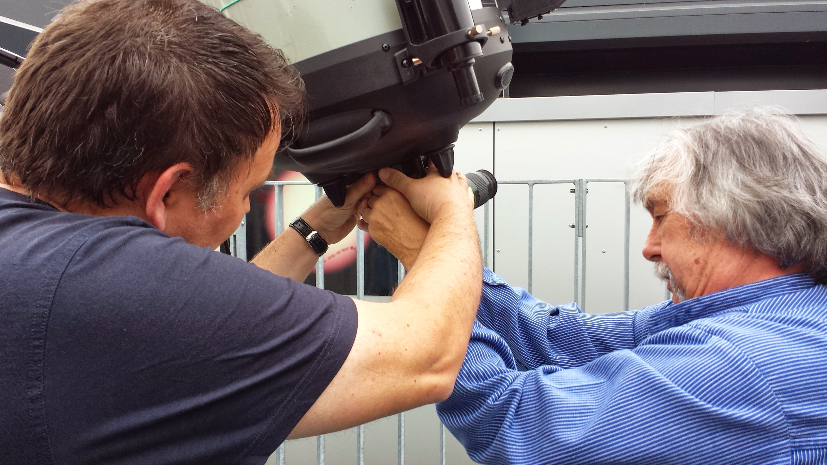 Letzte Arbeiten am neuen C14 Celestron Fernrohr. |