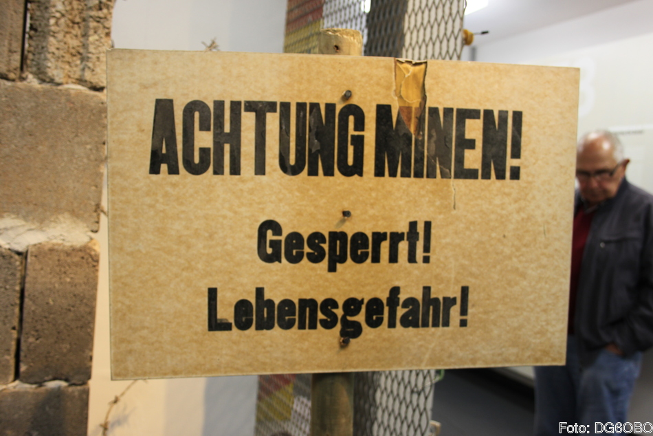 Wir trafen uns alle am Parkplatz des Museums innerhalb der weitläufigen Anlage. In einigen Containern sind kleine thematisch gegliederte Ausstellungen untergebracht. Das mehrstöckige Hauptgebäude beinhaltet zwei Etagen mit vielen Exponaten von Minen, Selbstschußanlagen bis zu Dokumenten.