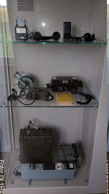 Was uns natürlich vom Hobby her am meisten interessierte, war elektrisches Gerät und Kommunikationsanlagen. Davon war einiges zu entdecken. Ein besonderes Exemplar war der Fernschreiber mit Umschaltung zwischen Deutsch und Kyrillisch. Funkgeräte und eigen installierte Telefonanlagen (bzw. Teile derselben) waren zu besichtigen.