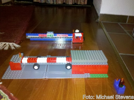 Michael hatte uns mit Familie wieder begleitet, wie die letzten Jahre auch schon. Und einen Tag später baute sein Sohn Erik ein wirklich treffliches Lego-Modell der Straßensperre. So geht die folgende Generation mit solchen Eindrücken um. Auch sonst hat Erik uns mit seinen lautstarken Durchsagen über PMR immer auf dem Laufenden gehalten.