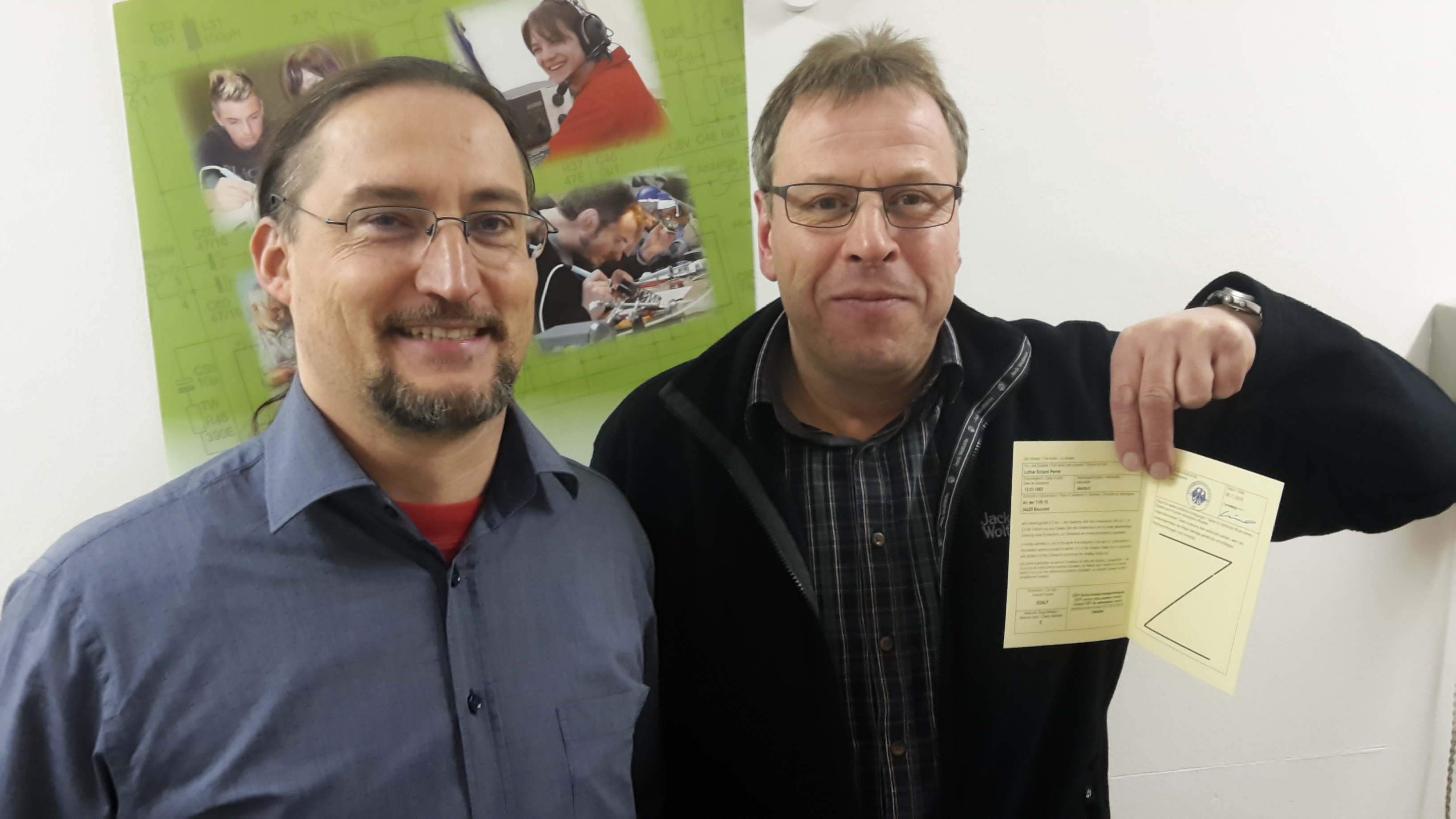 Nachdem er sich so viele Sorgen gemacht hat, hat Lothar seine Prüfung fehlerfrei absolviert. Ständiges, kontinuierliches Lernen trägt seine Früchte. Engagement und der feste Wille, es schaffen zu wollen, führt sichtlich zum Erfolg.